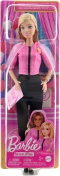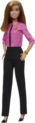 Barbie è pronta a ispirare storie di leadership grazie al suo elegante outfit rosa e nero e agli accessori.