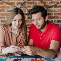 I puzzle sono realizzati con cartone di qualità e certificati FSC. Dimentica la pellicola plastica eccessiva, l'imballaggio è sigillato solo con adesivi.