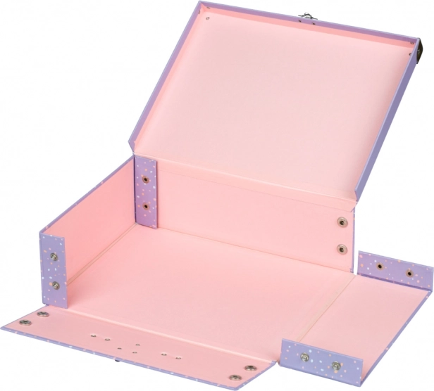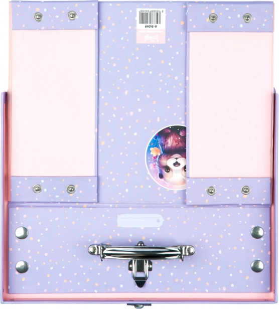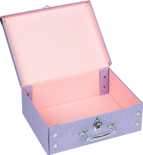 La valigetta combina un design giocoso con un uso pratico. Il manico in metallo e gli angoli rinforzati garantiscono resistenza e solidità.