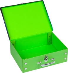 La valigetta è realizzata in carta laminata ed è dotata di angoli in metallo per resistenza all'usura.