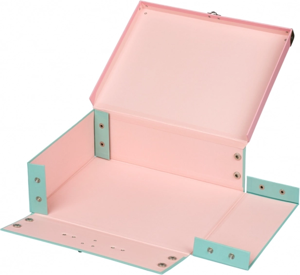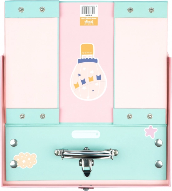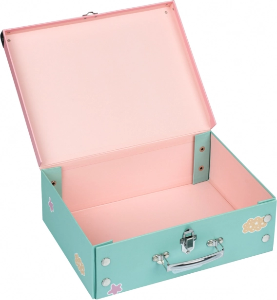 La valigia è dotata di un manico in metallo e si chiude con una classica fibbia. Il sistema unico di bottoni a pressione consente un facile assemblaggio e smontaggio, facilitandone il riponimento quando non in uso. Ideale per bambini e viaggi, assicura un trasporto sicuro e divertente dei loro giocattoli preferiti o delle necessità scolastiche.