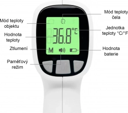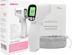 Il termometro senza contatto JUMPER combina velocità, sicurezza e precisione per l’uso quotidiano. Basta puntare il sensore a infrarossi al centro della fronte a una distanza di 2–3 cm e in 1 secondo il risultato appare sul display retroilluminato di facile lettura. A temperatura normale il display si illumina di verde, in caso di febbre si colora di rosso. La modalità silenziosa è particolarmente utile di notte.