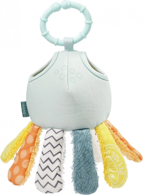 Con il polpo ogni bagnetto diventa un divertimento. Basta immergere il morbido peluche in acqua e poi tirarlo di nuovo per l’anello. L’acqua scorrerà attraverso i fori sul fondo del polpo creando una piccola cascata. Inoltre, il polpo è dotato di carta frusciante nei tentacoli, che favorisce lo sviluppo dei sensi e della motricità del bambino.