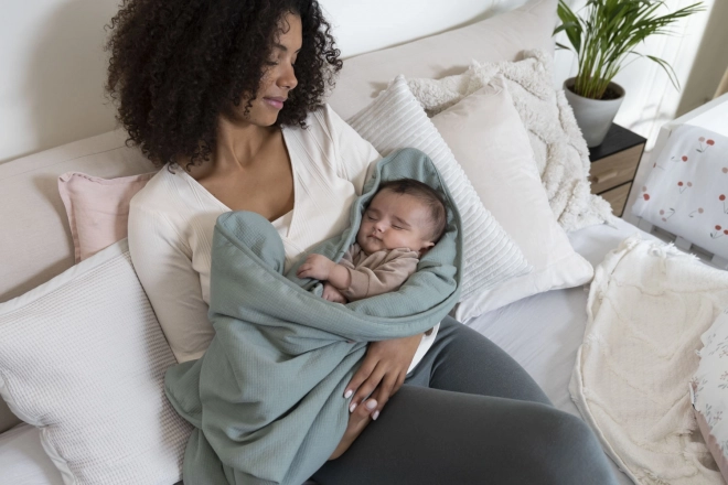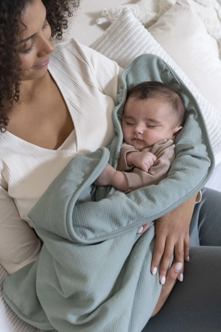 Coperta molto morbida, ideale per avvolgere il neonato a casa o durante le passeggiate all’aperto.