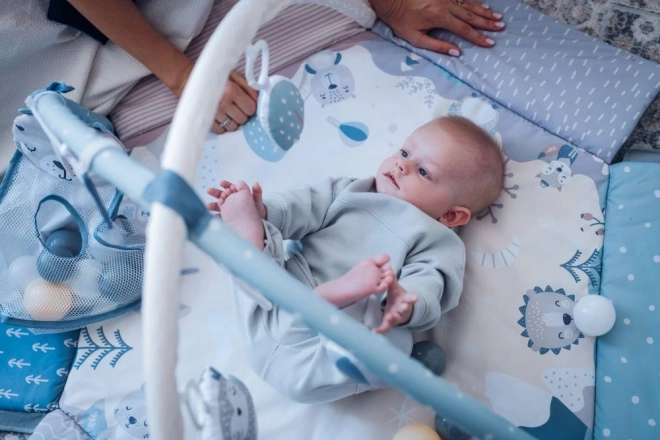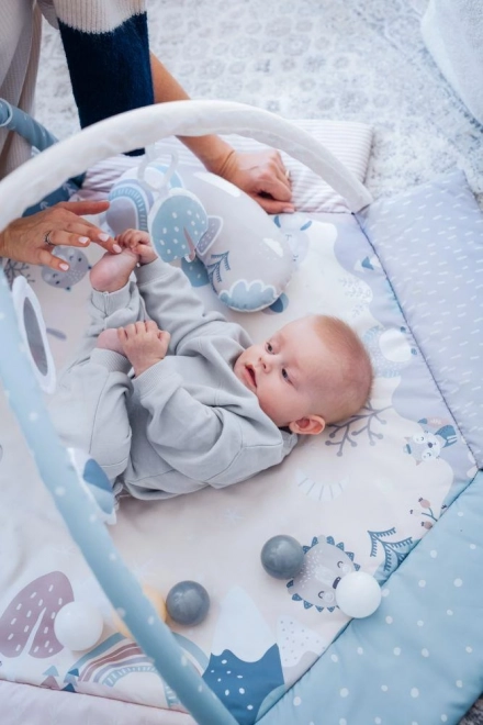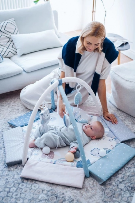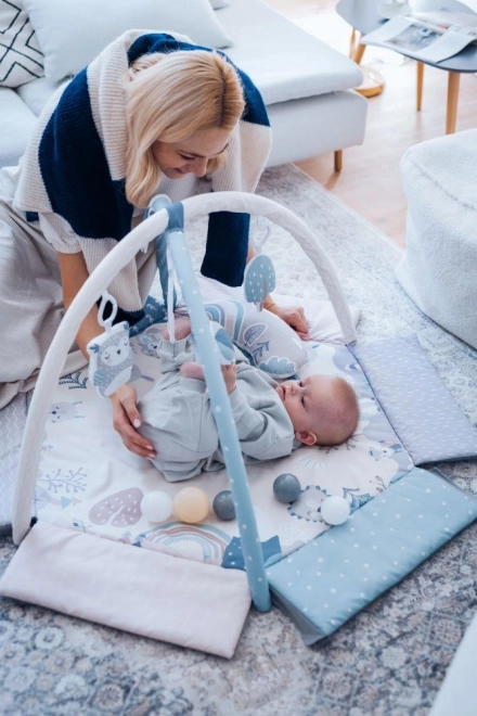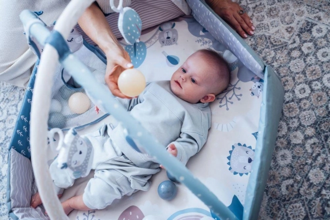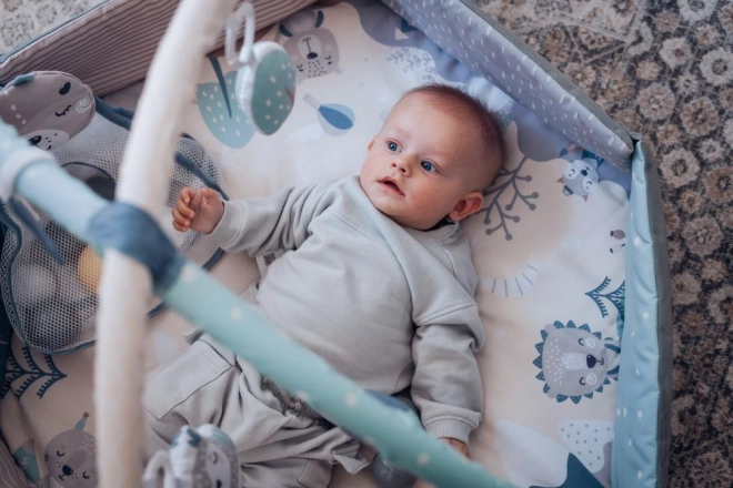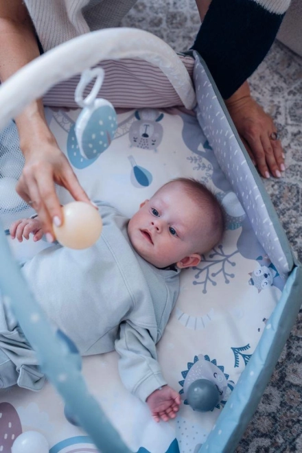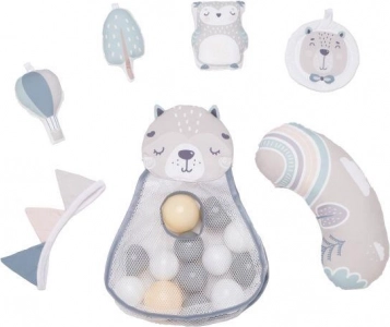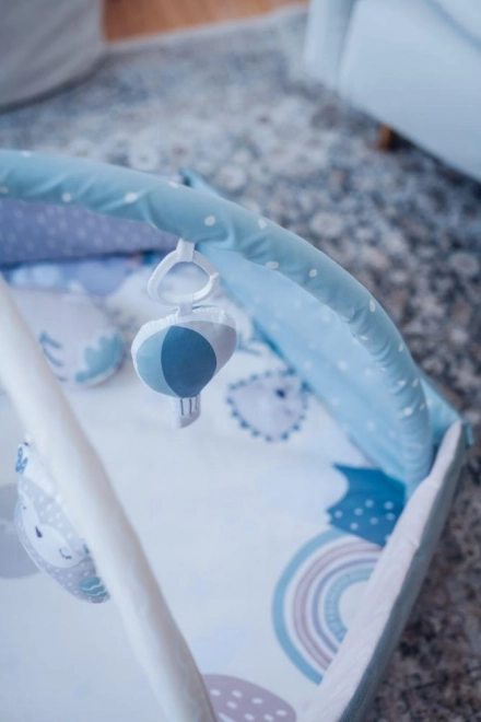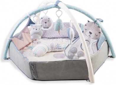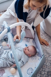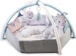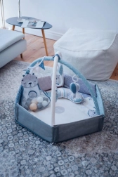 Questo tappeto gioco è realizzato con materiali resistenti e ha proprietà termoisolanti, offrendo comfort e sicurezza. L'uso di colori pastello delicati contemporaneamente calma e stimola lo sviluppo visivo del bambino. Arricchito con giocattoli sensoriali che stimolano i sensi del bambino e offrono gioia nel gioco.