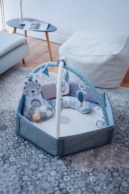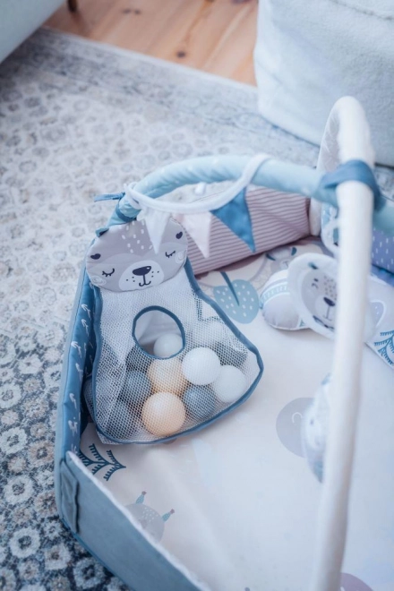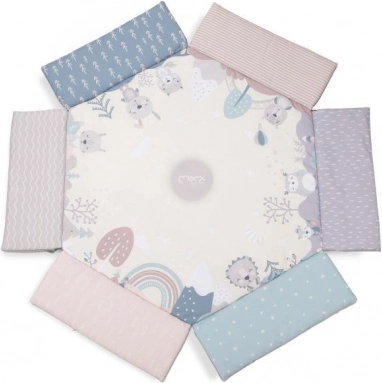 MoMi Pastel combina tre funzioni in una d materassino educativo, recinto e piscina asciutta con palline, offrendo così vari modi di divertimento.