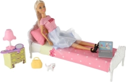 Il set include lettino, toletta, lampada e animali domestici per un gioco completo.