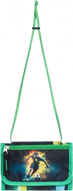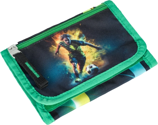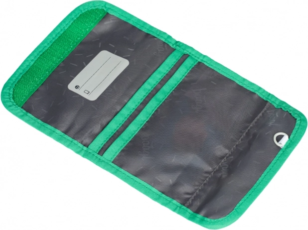 Il portafoglio offre diversi scomparti per banconote e carte e una pratica taschina con zip per le monete. Grazie al laccetto da indossare al collo il bambino non lo perde e lo ha sempre a portata di mano: ideale per gite, attività e tornei.