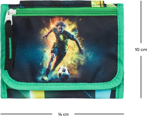 Questo elegante portafoglio BAAGL con motivo calcistico è pensato per bambini e ragazzi che vogliono tenere i propri oggetti in modo ordinato e sicuro. La struttura resistente affronta senza problemi la vita scolastica e le attività sportive, mentre la chiusura a strappo assicura un’apertura e chiusura rapide e semplici.