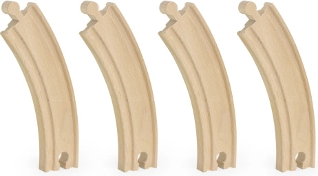 Confezione da 4 pezzi di binari curvi. Questi binari del marchio Viga sono compatibili con i binari del marchio Maxim. Confezionati in sacchetto. Dimensioni della curva: circa 18×4×1 cm. Età 3+