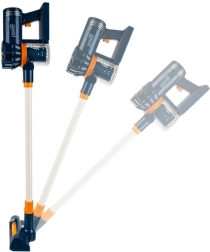 Spazzola elettrica con testa rotante, bocchetta a lancia e spazzola per imbottiti ampliano le possibilità di gioco e di apprendimento dell’ordine.
