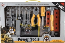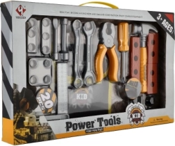 Martello, pinze, cacciavite, chiavi e materiali di fissaggio: tutto il necessario per un gioco realistico da riparatore e per sviluppare il pensiero tecnico.
