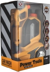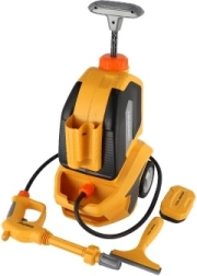 L'idropulitrice consente di regolare il getto d'acqua grazie al cappuccio girevole all'estremità del tubo. Il set include anche una spugna, una spatola tergivetro e un panno, così i bambini hanno tutto il necessario per giocare.