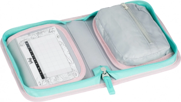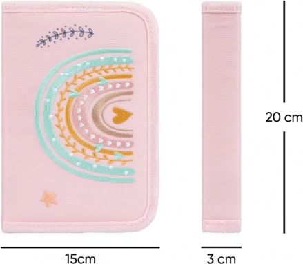 Astuccio pratico e moderno in tonalità rosa pastello con motivo arcobaleno che piacerà a scolari e studenti. La struttura a un piano con due alette consente un’organizzazione chiara e un accesso rapido a tutto l’occorrente. Materiali resistenti e cerniera YKK garantiscono lunga durata nell’uso quotidiano.