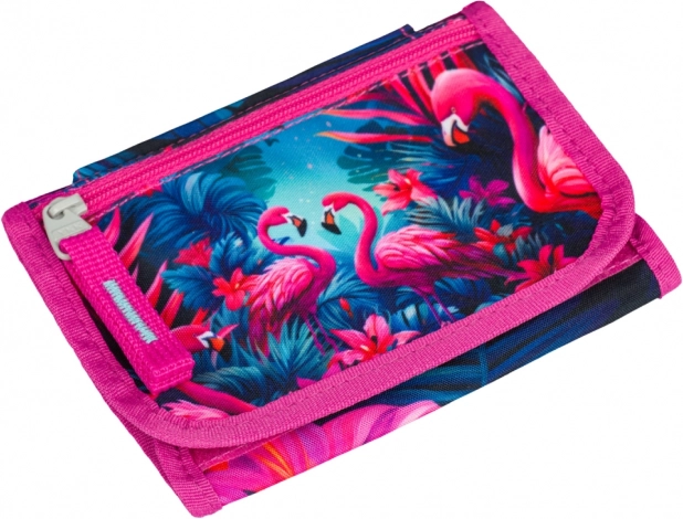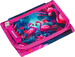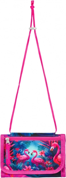 Questo colorato portafoglio con motivo tropicale di fenicotteri unisce un design giocoso a un'organizzazione pratica. Grazie al laccetto da collo avrai sempre denaro e documenti al sicuro con te: ideale per gite, scuola e attività.