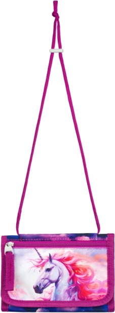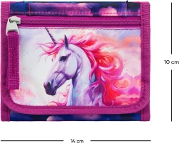Questo portafoglio leggero con il magico motivo unicorno farà felice ogni bambino. Grazie al laccetto si può indossare comodamente al collo, restando sempre a portata e al sicuro. Il materiale tessile resistente sopporta l’uso quotidiano a scuola, alle attività e durante le gite.