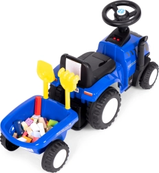 Lo spingi-cammina blu a forma di trattore, con aspetto realistico e licenza ufficiale NEW HOLLAND, offre ore di divertimento attivo dentro e fuori casa. La robusta struttura in plastica con elementi metallici assicura lunga durata e guida stabile, mentre il rimorchio amplia le possibilità di gioco e di trasporto di piccoli tesori dal giardino o dalla sabbiera.