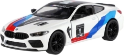 Elegante modello in metallo della BMW M8 Competition Coupé in scala 1:38, ideale per bambini e collezionisti. L'auto ha porte apribili, funziona con retrocarica ed è disponibile in quattro colori – rosso, nero, bianco e giallo. Perfetta per il gioco dei bambini e per la vetrina.