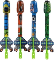 Il giocattolo offre un design multicolore e durante il volo emette un suono fischiante che attira l'attenzione e aumenta il divertimento.