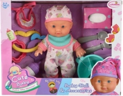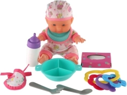 Questa bambola bebè da 22 cm è un’ottima compagna per il gioco quotidiano. Grazie al corpo in plastica rigida mantiene bene la forma ed è facile da pulire. Il set include tutto il necessario per la cura del bebè, dal pasto al divertimento.