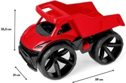 Scopri il robusto camion ribaltabile per bambini MAXIMUS in un vivace colore rosso, lungo 59 cm. Combina un design futuristico, una struttura leggera e resistente e un cassone ribaltabile funzionale con impugnatura comoda. Ideale per giocare in casa, in giardino e nella sabbia: i bambini ameranno le grandi ruote opache e i dettagli curati.