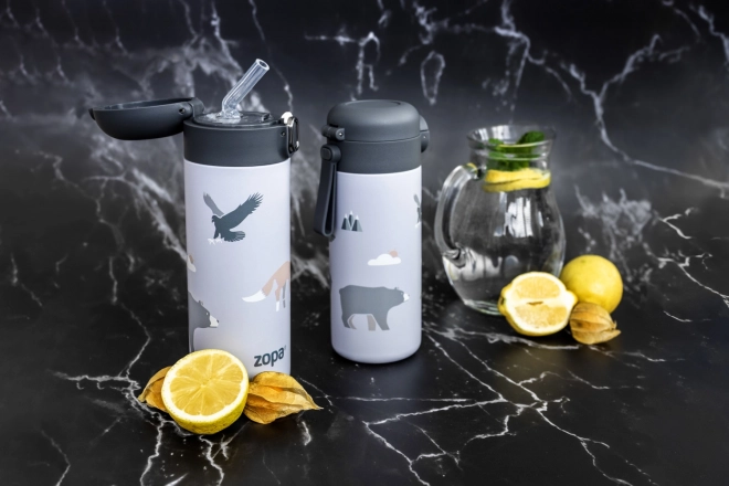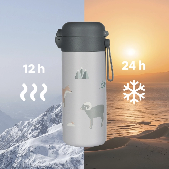Thermos per bevande con cannuccia e supporto in silicone 350 ml, Safari