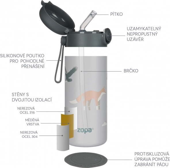 Thermos dal design allegro con motivi divertenti e capacità di 350 ml, dotato di un affidabile tappo ermetico e di doppio strato in acciaio inox di alta qualità, per mantenere la bevanda sempre come l’avete preparata: le bevande calde restano tali fino a 12 ore e quelle fredde fino a 24 ore.