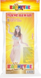 Questa elegante gonna hawaiana è la base perfetta per un costume esotico. È realizzata con sottili strisce di plastica in una tonalità naturale e in vita è decorata con fiori variopinti, che creano un marcato effetto tropicale. La lunghezza di 72 cm assicura un bel movimento durante la danza e un comfort prolungato per tutta la durata dell'evento.