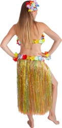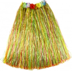 Una fantastica gonna in stile "Hawaii" non può mancare nel guardaroba di nessuna donna! Questo pezzo sensazionale è l’accessorio ideale per il carnevale o per la tipica danza hawaiana "HULA". La gonna, lunga 72 cm, è realizzata con sottili strisce di plastica in vari colori ed è decorata con petali floreali colorati. Che spettacolo! Diventa la stella della festa in maschera grazie a questa gonna hawaiana o crea un intero costume hawaiano! La confezione include solo la gonna.