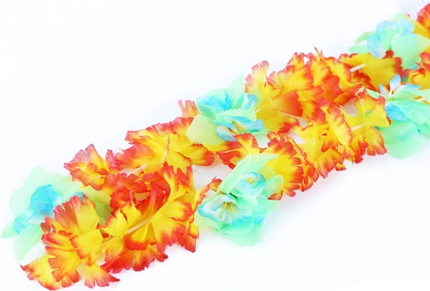 Colorata collana hawaiana lunga 100 cm, l’accessorio ideale per carnevale, feste e celebrazioni estive. È decorata con petali variopinti che donano al tuo costume un aspetto esotico e allegro.