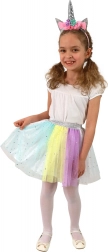 Questo incantevole set porta la magia degli unicorni nel guardaroba dei bambini. La gonna tutu in colori pastello, leggera e ariosa, ruota splendidamente e, grazie alla vita elastica, è facile da indossare e comoda da portare. Il look è completato dal cerchietto con corno e decoro floreale, che trasforma un giorno qualunque in un’avventura fiabesca.