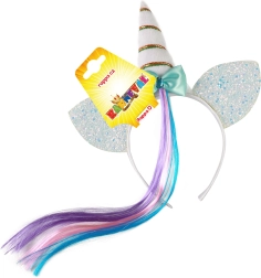 Accendi la fantasia dei bambini con questo magico cerchietto in stile unicorno. Cerchietto bianco con corno, orecchiette argentate, fiocco decorativo e ciocca di capelli arcobaleno, ideale per carnevali, feste di compleanno e travestimenti quotidiani. Adatto ai bambini dai 3 anni.