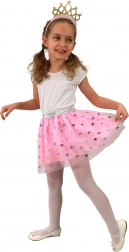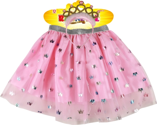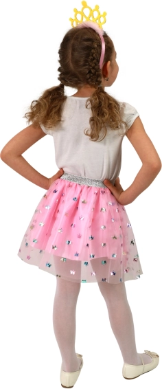 La gonna in tulle rosa con delicati stampi di coroncine crea un incantevole effetto da principessa per ogni occasione.