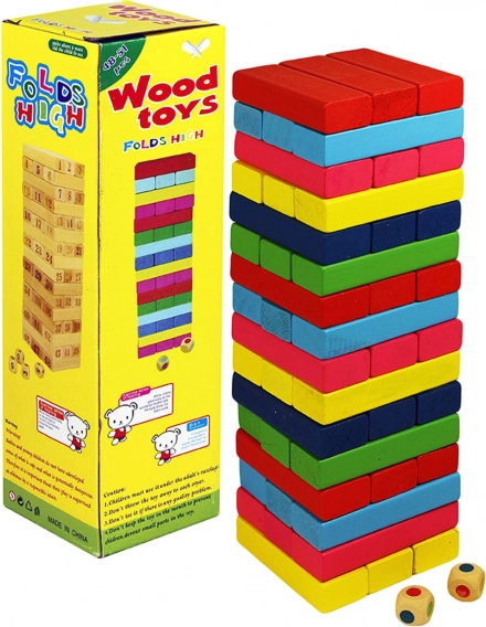 Torre di legno colorata è una scelta eccellente per il divertimento e lo sviluppo delle abilità motorie. Il gioco consiste nell'estrazione progressiva dei blocchi colorati dalla torre esistente e nella loro collocazione sulla cima.