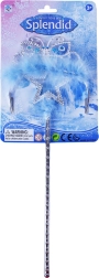 La bacchetta magica ha un design con stella e pietre azzurre che sottolineano la sua magia ed eleganza.