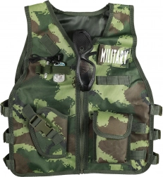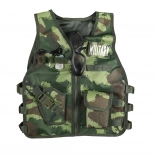 Pratico giubbotto mimetico con numerose tasche per trasportare tutti gli accessori di gioco necessari.