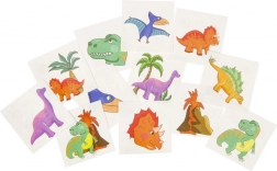 Divertente set di tatuaggi temporanei a tema dinosauri con 12 disegni diversi, ognuno su scheda separata e con istruzioni grafiche per un'applicazione rapida e semplice. Ideale come piccola ricompensa, regalo o accessorio per feste per bambini.