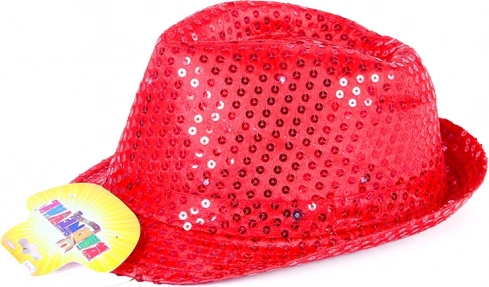 Accendi la festa con questo elegante cappello disco rosso! È ricoperto di paillettes e, una volta acceso, lampeggia a colori in tre velocità. Il controllo è gestito da un discreto pulsante laterale e nella confezione sono incluse 3 batterie LR44.