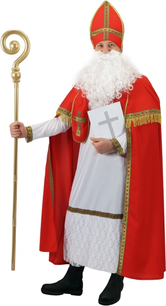 Questo elegante costume di San Nicola per adulti crea un’atmosfera festiva autentica durante le celebrazioni di dicembre. La lunga tunica bianca di circa 140 cm è completata da un mantello rosso intenso con colletto, una stola con croce ben visibile e il tradizionale copricapo. Grazie ai materiali confortevoli e al taglio studiato, il costume è facile da indossare e mantiene perfettamente la forma per tutta l’esibizione.