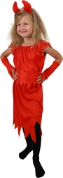 Elegante costume da diavoletta per bambine 4–6 anni (105–116 cm) in un vivace colore rosso e con taglio confortevole. La confezione include abito, cintura, polsini e cerchietto con corna. La pratica confezione ECO fa risparmiare spazio e tutela la natura – meno plastica, dimensioni compatte e ideale per acquisti online secondo la foto.