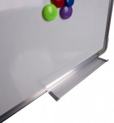 La lavagna è fornita con 10 magneti colorati adatti per fissare documenti o disegni. È realizzata in cartone rivestito in ferro con una cornice in alluminio per garantire lunga durata e resistenza.