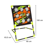 Il punteggio chiaramente indicato 5, 10 e 20 punti favorisce una competizione leale e motiva a migliorare progressivamente. Sei palline forate dal diametro di circa 7 cm sono sicure e comode da tenere in mano: ideali per esercitare tecnica, velocità e forza del lancio.