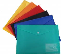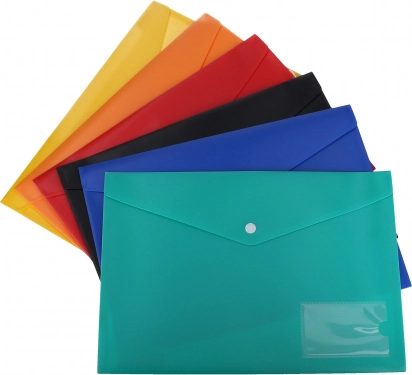 Cartella portadocumenti pratica con foglio in cera, ideale per archiviazione e organizzazione dei documenti. Materiale facilmente lavabile con chiusura a pressione.