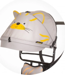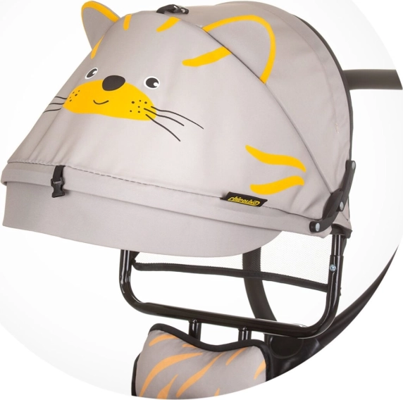 Il triciclo è dotato di un design divertente in stile tigre, incluso il dettaglio delle orecchie sul tettuccio.