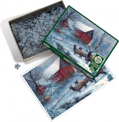 Entra in una magica scena invernale con i puzzle di alta qualità COBBLE HILL. Grazie a una fustella speciale, che non segue la griglia standard, i pezzi hanno forme originali e irregolari e non sono sempre allineati su un unico asse. Questo offre un esperienza di assemblaggio più intensa e prolunga il piacere nel completare il motivo.