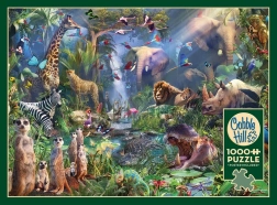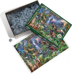 Immergetevi nel mondo della natura selvaggia con il puzzle COBBLE HILL Nella giungla. La speciale fustellatura con forme non tradizionali dei pezzi, che non seguono la classica griglia, garantisce un’esperienza di assemblaggio più intensa e un livello di difficoltà superiore – ideale per chi cerca qualcosa di più del solito puzzle.