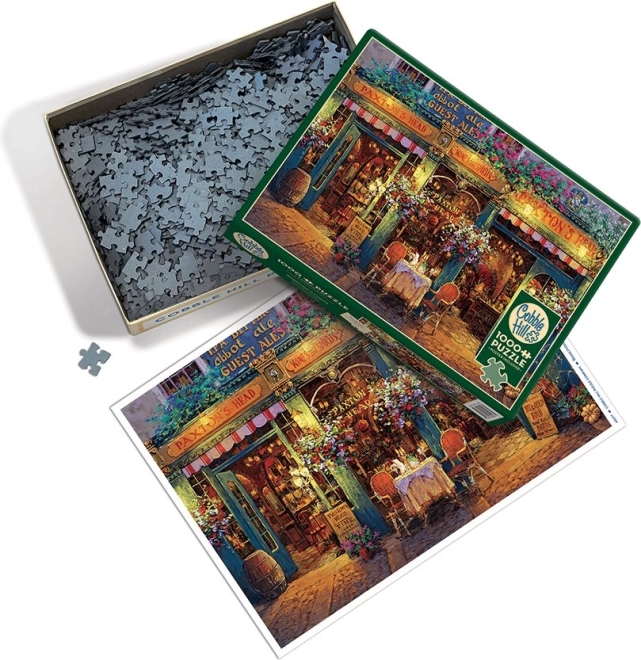 Il puzzle cattura una scena incantata dell'ingresso fiorito di Paxton's Head, enfatizzando colori e dettagli.