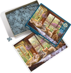 I puzzle COBBLE HILL si distinguono per una fustella unica che non copia la griglia standard. Angoli e bordi dei pezzi non sono sempre allineati e i singoli elementi hanno forme insolite. Grazie a ciò, il montaggio risulta più divertente e impegnativo rispetto ai puzzle comuni.