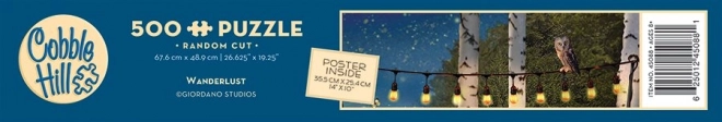Puzzle eleganti Cobble Hill a tema Voglia di viaggiare con 500 pezzi che, grazie alla fustellatura irregolare, offrono una sfida invitante. In confezione trovi anche un'immagine di riferimento 30,5 × 22,9 cm; una volta composto, il puzzle misura ca 67,6 × 48,9 cm.