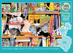 L’originale taglio irregolare di COBBLE HILL non segue la classica griglia, perciò l’assemblaggio è più divertente e un po’ più impegnativo. Nella confezione trovi anche una guida di 31,6 × 22,9 cm, che facilita l’orientamento nel soggetto “Tempo di storie di gatti” pieno di adorabili mici.